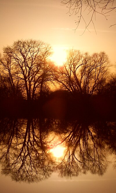 führte uns heute ein ausgedehnter Spaziergang. Ich fand es wunderschön, wie sich die Abendsonne im Altwasser der Donau spiegelte.