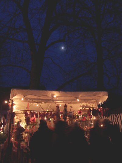 Sogar der Mond schaute zwischen den dürren Ästen der alten Linde dem bunten Treiben ein wenig zu. Überall brannten echte Kerzen und kleine Feuer.