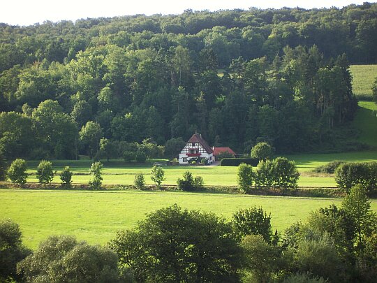 Von der Anlage aus hat man auch einen schönen Blick ins Tal. Diese Stille und der Blick in die Ferne, wie ich das genieße. Schaut mal hier ... wer da wohl wohnen mag?
