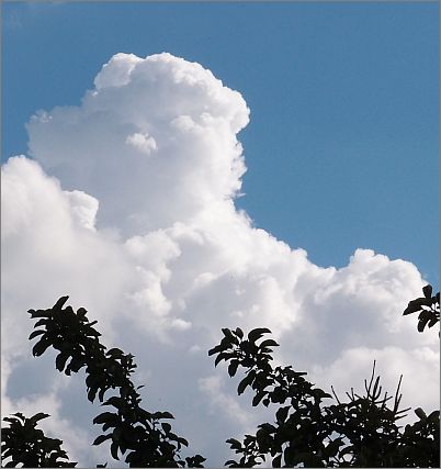 Vorgestern Abend braute sich zum zigsten Male etwas am Himmel zusammen. Hinter dunklem Himmel zog eine schneeweiße Wolkenkette auf uns zu ...