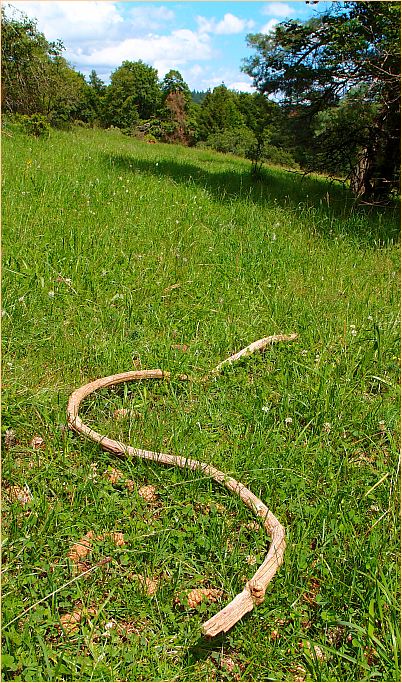 Nein, nein, ich meine nicht die im Supermarkt an der Kasse ... ich rede von der gemeinen Holznatter, der man zuweilen auf Wiesen in Waldnähe begegnen kann. Die hier hat mir einen gehörigen Schrecken eingejagt ... puuuh ...