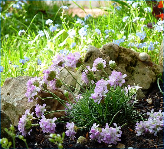 Auch die Blaukissen und die Phlox-Kissen blühen noch. Das sieht so schön aus.