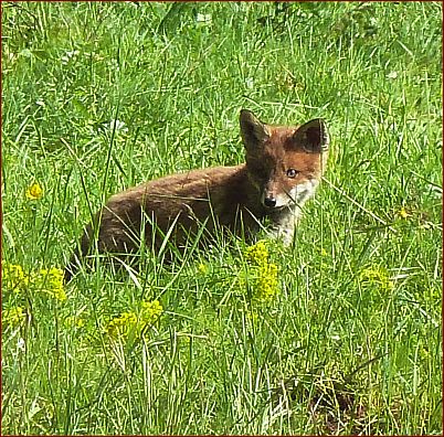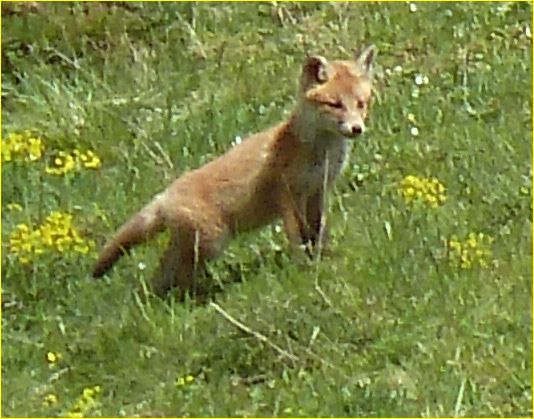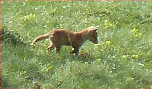 Die Aufnahme ist sehr schlecht, denn dieses schlaue Füchslein war noch weiter von mir entfernt. Aber ich finde es so niedlich, dass ich es euch dennoch zeigen muss.