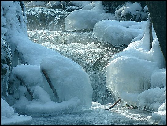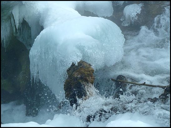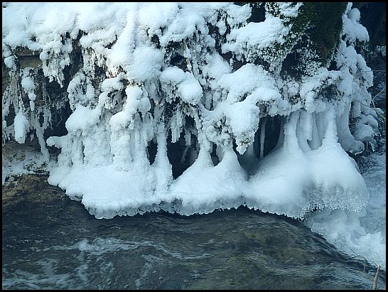 Was ich aber eigentlich sagen wollte, ... dass es dann wohl nicht verwundert, wenn es mich selbst bei Eiseskälte ans Wasser zieht. Nein, nein, von Eisbaden halte ich gar nichts, soweit geht die Liebe dann doch nicht. Aber wie schön ein Fluss oder zugefrorener Bach oder Wasserfall aussehen kann, konnte ich in ein paar Fotos festhalten.