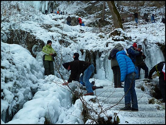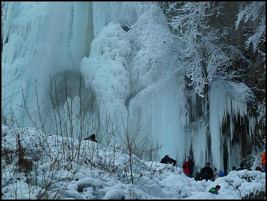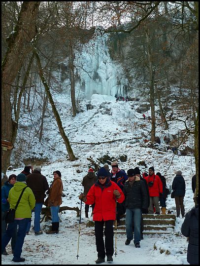 Am Uracher Wasserfall war regelrechte Völkerwanderung, denn wie verzaubert der Wasserfall aussah, konnte man vorher in der Zeitung lesen.