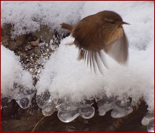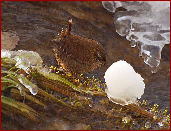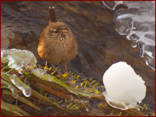 So ein Zaunkönig ist nicht viel größer als eine Pflaume würde ich sagen. Wie es da im eisigen Bächlein umherhüpfte, war wie ein Wunder für mich. So ein kleines dünnbeiniges Kerlchen.