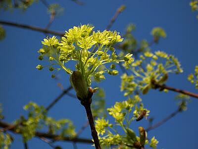 Nun lest und staunt. Es ist der allseits bekannte AHORN, der hier noch zaghaft vor sich hinblüht ...