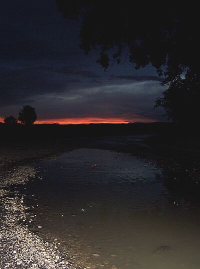 Diese Aufnahme entstand gestern Abend vor Sonnenuntergang, nachdem das Unwetter durchgezogen war. Was ihr hier seht, sind die Spuren, die dicke Wolken kurz davor hinterlassen haben ... eine Pfütze ;-)