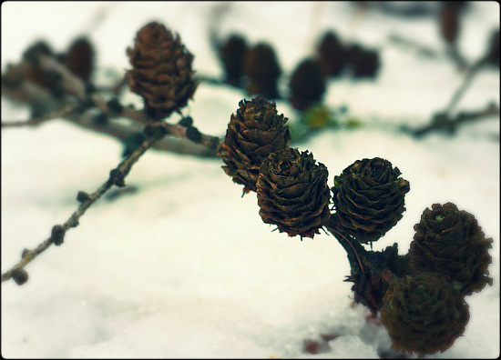 Ich fand das Motiv so schön ... diesen abgebrochenen Lärchenzweig mit seinen schönen kleinen Zapfen ...