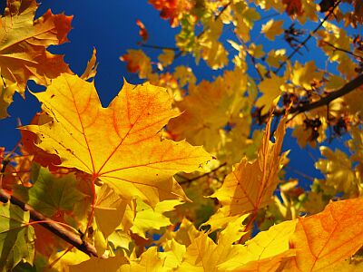 Das Foto stammt auch vom letzten Herbst und zeigt einen Ausschnitt unseres kleinen Ahornbaumes. Dieses Jahr hat er irgendeine Krankheit. Ein paar seiner Blätter haben dunkle Flecken und sehen schon sehr welk aus. Obwohl sich erste rote Blätter zeigen, wird er sich wohl diesen Herbst nicht in so prächtigen Farben präsentieren ... schade.
