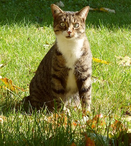 Gestern wollte ich das Tigerle im Garten fotografieren. Er lag so friedlich zwischen dem Herbstlaub - das musste ich festhalten.