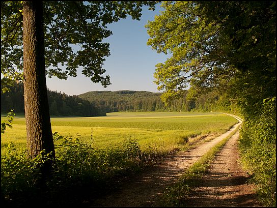 Dafür zeige ich euch dieses Foto ... gleicher Standpunkt - entgegengesetzte Richtung. Hier seht ihr, wie der Weg in den Wald hineinführt ...