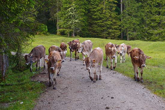 Die Kühe dachten wohl, da kommt die Bäuerin ... und liefen mir hinterher ...