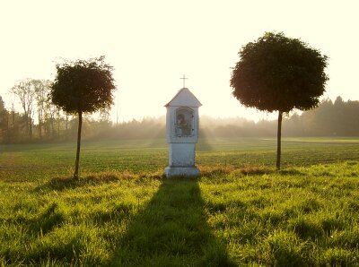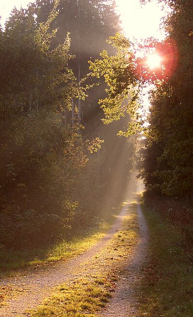 Welke Blätter, die von Spinnennetzen aufgefangen wurden, rote Pilzkappen, die aus dem nassen Gras hervorschimmerten ... und zarte Sonnenstrahlen, die noch ganz schwache Nebelschwaden sichtbar machten ...