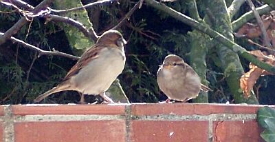 Zunächst möchte ich euch aber dieses süße Spatzenliebespaar zeigen, das heute ein Stelldichein auf meiner Terrasse hatte ...