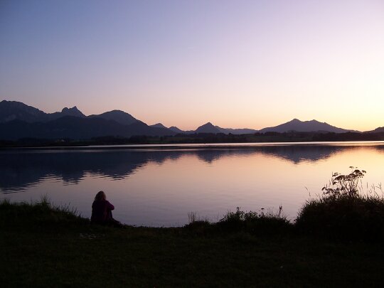 Die Fußspitzen im abendroten See