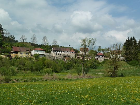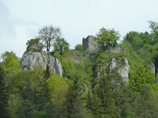 Aber auch das Tal hat einiges zu bieten. Hier seht ihr die Burg Niedergundelfingen, die Nachbarburg, die man so wunderbar von oben sehen kann. Um diese sind wir herumgelaufen ...