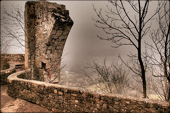 An einem Nebeltag hat der Besuch einer alten Ruine durchaus was reizvolles. (Man sollte nur nicht unbedingt seine "guten" Schuhe anziehen.)
