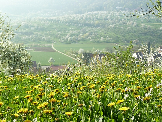 überlegte ich gestern, als ich all die Kirschbäume sah. Millionen schönster Kirschblüten. Oder reicht das am Ende gar nicht? Es sollen ca. 20.000 Kirschbäume sein, die man rings um die Limburg bei Weilheim/Teck in dieser, ihrer Blütezeit bewundern kann.