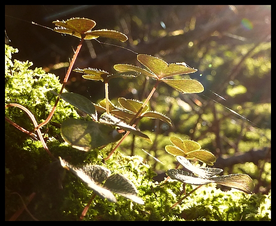 Dieses Foto entstand aus meiner Perspektive. Dafür hab ich extra meinen tannenbenadelten Bau verlassen und bin auf Abenteuersuche gegangen, was für so eine Waldameise echt nicht ganz ungefährlich ist. Ich liebe den moosbedeckten Waldboden und die kleinen maroden Baumstümpfe mit den hübschen Kleeblättern darauf. Eine kleine Spinne scheint wohl die Blätter als Zwischenstation zu nutzen, wie sich ihre Fädchen darüber ziehen.