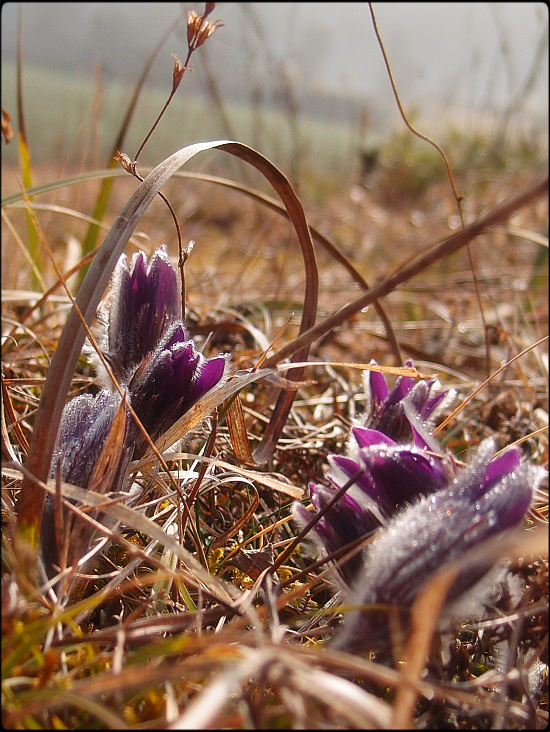 An einem Hang unweit der Ruine blühen die wunderschönen und unter Naturschutz stehenden Kuhschellen.