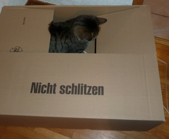 Jedenfalls kam heute meine Vier-Jahreszeiten-Bettdecke. Wie immer musste das Tigerle doch gleich mal nachschauen, was sich in dem leeren Karton befindet ...