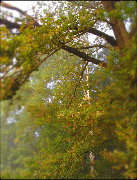 Wann immer die liebe Sonne zwischen den Ästen der Bäume hindurchblinzeln wollte, kamen Nebelgeisterchen und versperrten ihr die Sicht.