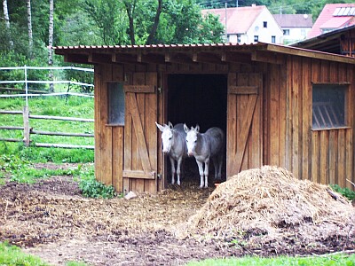 Heute hab ich euch zwei Eselchen mitgebracht, die mir vergangenen Sommer bei einem Spaziergang vor die Linse liefen. Ich weiß, auf dem Foto stehen sie brav in ihrem Ställchen, als hätten sie sich was zu erzählen und würden beobachten, wer so des Wegs kommt. Aber sie sind mir auch vor die Linse gelaufen. Nur sind diese Fotos leider unscharf, deshalb nur dieses hier ...