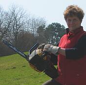 Die Motorsäge halte ich hier nur fürs Foto. Vor diesem Gerät hab ich einfach zuviel "Respekt" ;-)))