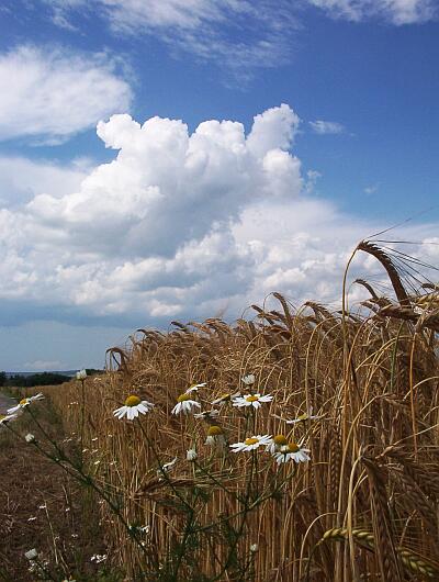 (sunny)Ich will die Grillen zirpen hören am Abend, das Pfeifen der Schwalben, wenn sie auf Insektenfang durch die Luft schwirren, ich will den Geruch reifer Ähren, Mohn- und Kamillenblüten, ich will durch ausgetrocknete Pfützen und endloser Feldwege entlang spazieren, weiße Plusterwölkchen am Himmel sehen ... und eine Sonne, die nie untergeht ... *soseufz* ...