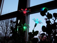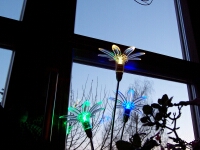 Nun steht sie an meinem Küchenfenster und erfreut mich jeden Tag, sobald es dämmert, mit seinen ständig wechselnden Farben. Von draußen sieht es auch lustig aus.