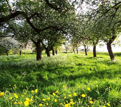 Gestern wollte ich schnell noch ein paar davon einfangen, bevor die ganze Pracht wieder hinüber ist. Leider spielte Frau Sonne Verstecken mit mir. Aber in einem schwachen Moment konnte ich doch auf den Auslöser drücken und diese schöne Apfelbäumchenwiese festhalten ...