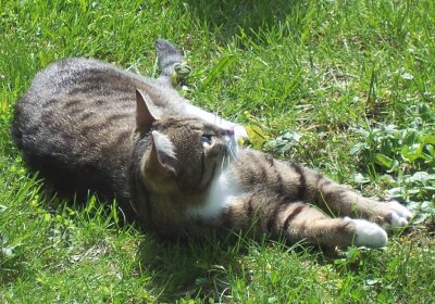 Da hats unser Katerle gut. Der hat es sich in der Wiese bequem gemacht ...