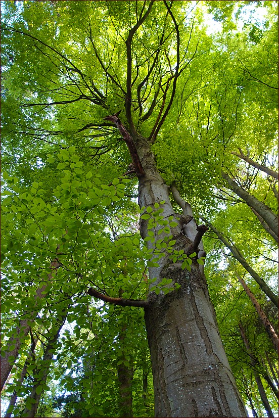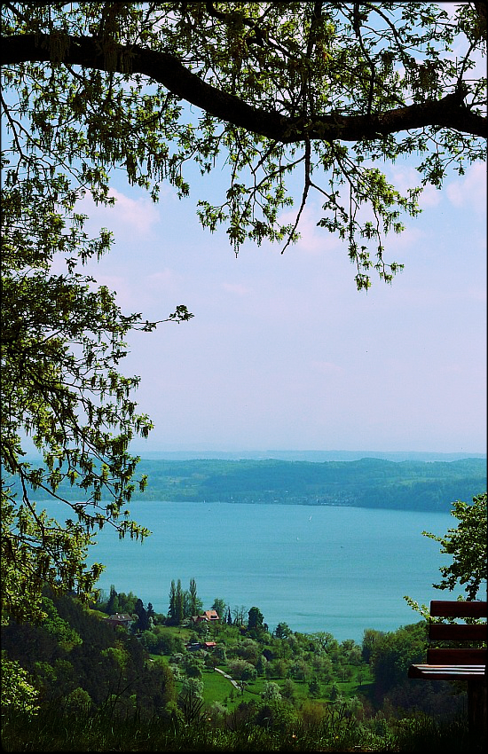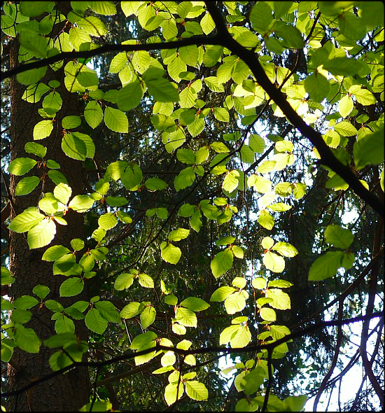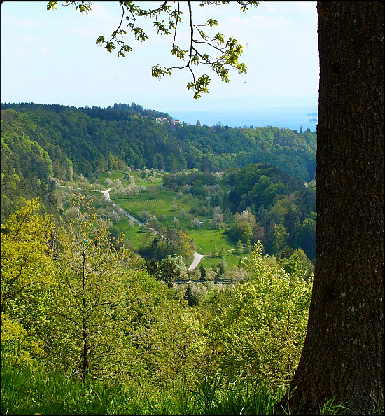 Ein großes Stück unseres Weges ging es durch den Wald, wo ein weiteres Highlight auf mich wartete. Ich weiß nicht, ob ich es mir einbilde, aber ich habe das Gefühl, in Bodenseenähe wachsen die Bäume besonders hoch. Das fiel mir schon im vergangenen Jahr auf. Jedenfalls fühlte ich mich wie von alten Bekannten begrüßt und Willkommen geheißen. Diese mächtigen, riesigen Bäume mit ihrem frisch entfalteten hellgrünem Laub, das wie ein gigantisches Dach wirkt, auf dem die Sonnenstrahlen tanzen ... Seelenbalsam pur!