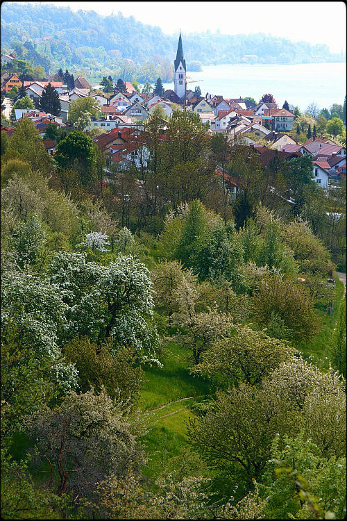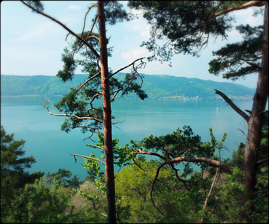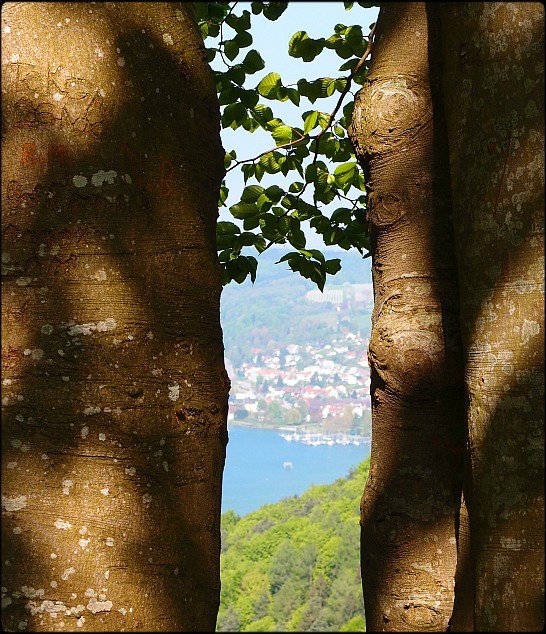 Aber so nett der Ort ist, es ist auch ziemlich viel los an diesem schönen Frühlingstag. Und so halte ich es nicht allzu lang aus und flüchte zurück in den Wald und genieße von oben ein letztes Mal die herrliche Aussicht, die uns am Morgen wegen des Nebels verwehrt war.
