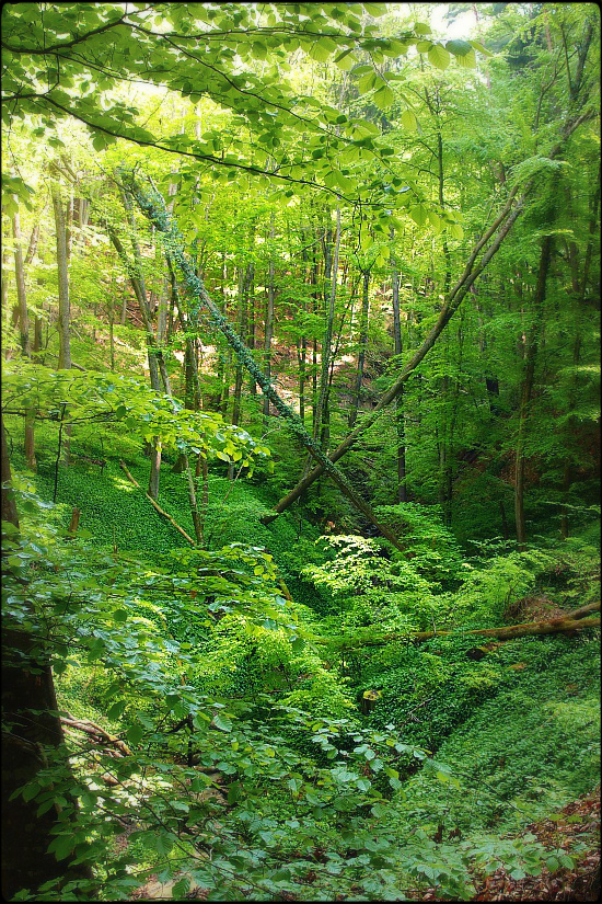 Sieht es hier nicht aus wie im Urwald? Das war auch mein erster Gedanke, aber das viele Grün, das sich über den Waldboden legt, ist Bärlauch in Uuuunmengen ... könnt ihr es riechen?