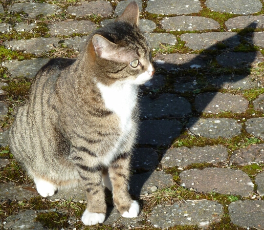 ... möchte ich nun lösen. Die meisten haben es richtig erkannt, bravo. Welcher Schatten sollte mir schon folgen? Da konnte nur das neugierige Tigerle Dieterle dahinter stecken, der auch ganz perplex war, als diese kalte weiße (eher schwarzweiße) Masse im Eiltempo von der Sonne dahingeschlotzt wurde.