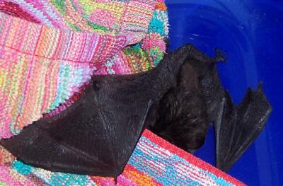 Danke für eure lieben Genesungswünsche, habs überstanden. Zeigen möchte ich nun endlich die versprochenen Fledermäuschenfotos. Zunächst hab ich es vorsichtig mit einem Handtuch in den Wäschekorb gelegt ...