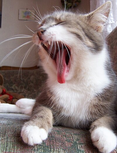 und hatte eigentlich vor, mich hier auf der Couch einzurollen und paar Stündchen von lahmen Mäusen, üppig gefüllten Futterschälchen und aparten Katerchen zu träumen ... *schnurrrrrrrr* ... und nun zwingt mich mein Frauchen, hier auf diesen grauen Drückerdingern und mit dieser unförmigen ohr- und schwanzlosen Plastemaus einen Text reinzupföteln. Wie soll denn das geh`n mit dieser Pfote ... ???