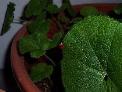 Ich trug es in meiner Hand nach Hause und bekam davon fast selbst eine Kältestarre. Daheim trug ich es in die Stockrosenpflanzschale (ja, genau die, die von Mimi zweckentfremdet wurde). Und das Wunder geschah ... nach einer Weile fing das Käferchen wieder an zu krabbeln ... und liess sich sogar fotografieren ;-)