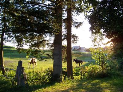 Es war so seelenberuhigend, an der Pferdekoppel zu stehen und den Tieren ein wenig zuzuschauen. Hinter dem kleinen Dorf versank ganz langsam der rotgoldene Ball, im nahen Feld begannen die Grillen zu zirpen, der milde Abendwind trug den Duft frischgemähten Heus unter meine Nase und ein scheinbar unermüdliches Hummelchen holte vermutlich ein letztes Mal Nektar aus einer Kleeblüte.