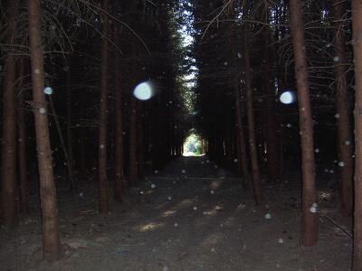 Es pollt hier so sehr, dass es auf den Fotos, die ich heute bei unserem Waldspaziergang geschossen habe, ausschaut, als würde es schneien ... verrückt. Schaut mal, mitten im dunklen Wald ...