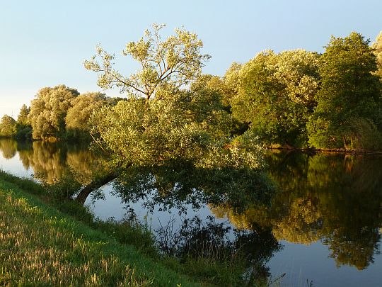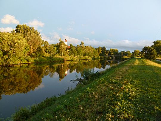 Hier könnt ihr sehen, wie ruhig und schön die Stimmung dann am Abend war. Die Donau lag ganz ruhig. Neben der Kirche ist das Storchennest. Auch hier konnten wir uns überzeugen, dass es den Jungstörchen gut ging. Über die Webcam kann man sich auch davon überzeugen. Ich bin so froh.