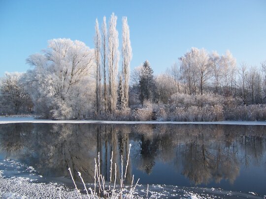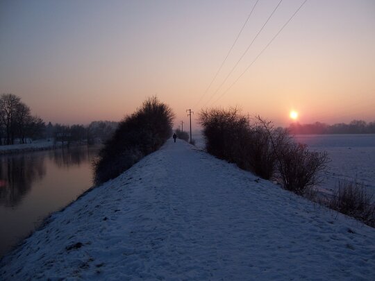 kalt war auch dieses Wochenende. Aber die Sonne hatte es diesmal durch die frostige Nebeldecke geschafft, so dass wir einen schönen Spaziergang Fußmarsch entlang der Donau zum Baggersee bis Sonnenuntergang (dann hatten wir das Gefühl, dass uns die Pobacken und einiges mehr zusammenfrieren) machen konnten.