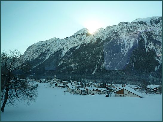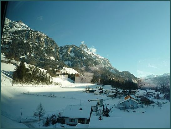 Der Weg war das Ziel, denn unser Zug schlängelte sich zwischen den Bergen entlang und gab immer wieder schöne Blicke durch die verschneite Landschaft frei.