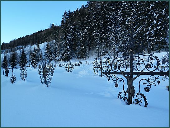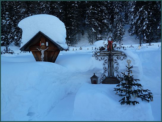 Da wir keine Wintersportler sind, begnügten wir uns mit einem Rundgang durch den Ort ... und kamen dabei auch an einem Friedhof vorbei ...