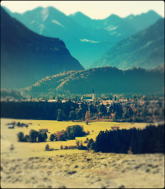 Hier seht ihr den Ausschnitt eines Fotos vom schönen Oberstdorf, das ich ein wenig bearbeitet habe. Es war ziemlich diesig an diesem Tag, deshalb waren die Fotos etwas fad geworden. So habe ich auf diese Art noch bissel was rausgeholt.